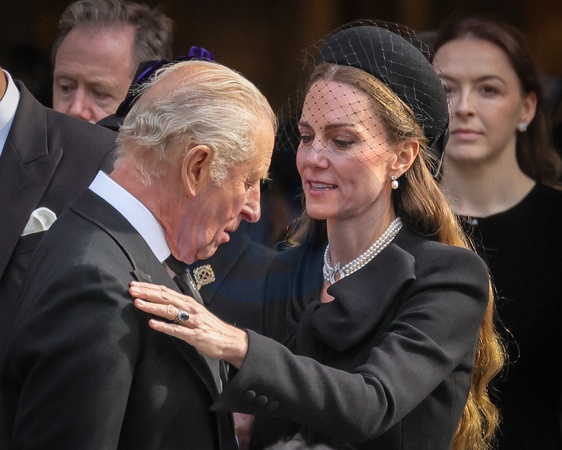 London, UK, 16th Sep 2025. HRH King Charles III, The Prince and Princess of Wales Prince William and Princess Catherine, Anne the Princess Royal, Prince Andrew The Duke and Duchess of York, Prince Michael of Kent and other senior members of the Royal Family all pay their last respects as the coffin is carried to the hearse. They then depart from Westminster Cathedral after the a requiem mass, a Catholic funeral service held for the Duchess of Kent, who passed away on 4 Sep., Credit:Imageplotter / Avalon