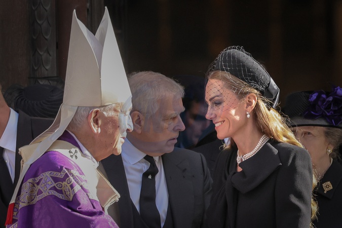 London, UK, 16th Sep 2025. Catherine thanks the clergy. HRH King Charles III, The Prince and Princess of Wales Prince William and Princess Catherine, Anne the Princess Royal, Prince Andrew The Duke and Duchess of York, Prince Michael of Kent and other senior members of the Royal Family all pay their last respects as the coffin is carried to the hearse. They then depart from Westminster Cathedral after the a requiem mass, a Catholic funeral service held for the Duchess of Kent, who passed away on 4 Sep., Credit:Imageplotter / Avalon