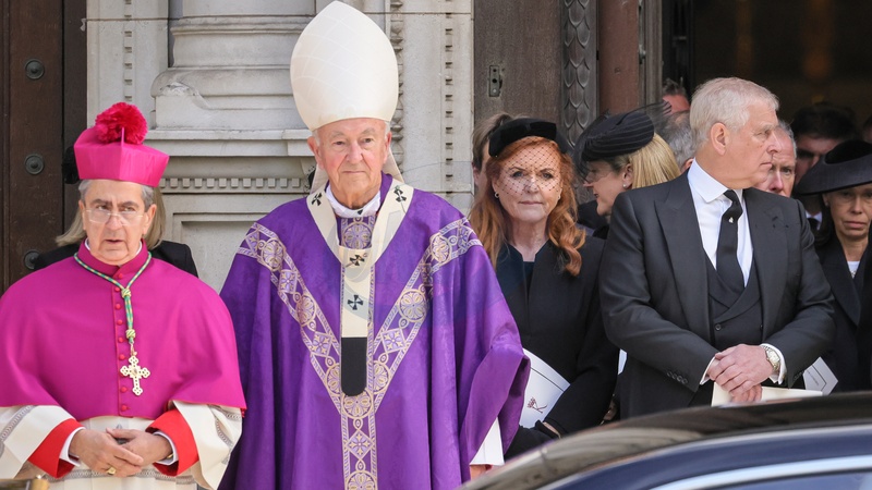 London, UK, 16th Sep 2025. The Duchess of York, Prince Andrew,. HRH King Charles III, The Prince and Princess of Wales Prince William and Princess Catherine, Anne the Princess Royal, Prince Andrew The Duke and Duchess of York, Prince Michael of Kent and other senior members of the Royal Family all pay their last respects as the coffin is carried to the hearse. They then depart from Westminster Cathedral after the a requiem mass, a Catholic funeral service held for the Duchess of Kent, who passed away on 4 Sep., Credit:Imageplotter / Avalon