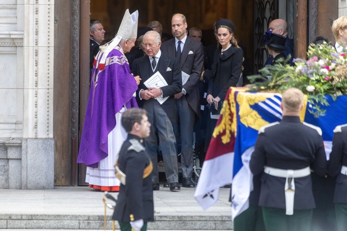 September 16, 2025, London, England, United Kingdom: King CHARLES III, Prince of Wales WILLIAM and Princess of Wales CATHERINE are seen outside Westminster Cathedral after Requiem Mass service for the Duchess of Kent. This is the first Catholic funeral service held for a member of the royal family in modern British history. Katharine, the wife of the late Queen's cousin the Duke of Kent, converted to Catholicism in 1994., Credit:ZUMAPRESS.com / Avalon
