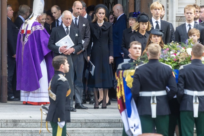September 16, 2025, London, England, United Kingdom: King CHARLES III, Prince of Wales WILLIAM and Princess of Wales CATHERINE are seen outside Westminster Cathedral after Requiem Mass service for the Duchess of Kent. This is the first Catholic funeral service held for a member of the royal family in modern British history. Katharine, the wife of the late Queen's cousin the Duke of Kent, converted to Catholicism in 1994., Credit:ZUMAPRESS.com / Avalon