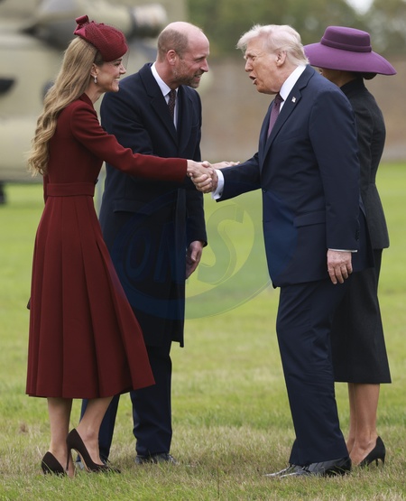 President Donald Trump and First Lady Melania Trump are welcomed by William and Catherine, The Prince and Princess of Wales in the Walled Garden on the Windsor Castle estate on Wednesday 17th September 2025, Credit:Ian Vogler / Avalon