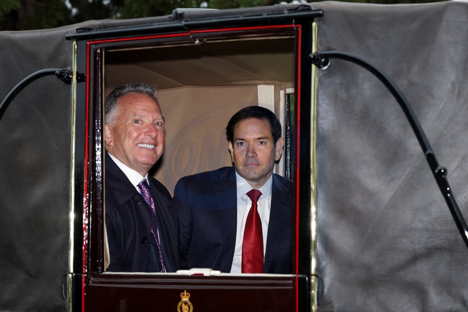 U.S. Secretary of State Marco Rubio and White House Special Envoy Steve Witkoff ride in a carriage during a procession through Windsor Castle, in Windsor, Britain, September 17, 2025., Credit:Toby Melville / Avalon