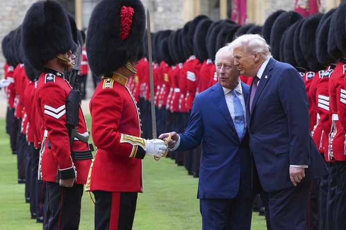 President Donald Trump and Britain's King Charles III review the Guard of Honour after the arrival at Windsor Castle in Windsor, England, Wednesday, Sept. 17, 2025., Credit:Kirsty Wigglesworth / Avalon