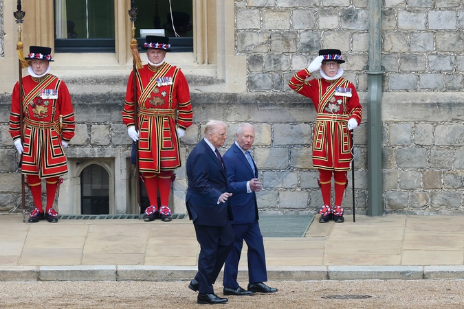 WINDSOR, ENGLAND - SEPTEMBER 17: U.S. President Donald Trump and King Charles III during the State visit by the President of the United States of America at Windsor Castle on September 17, 2025 in Windsor, England., Credit:Chris Jackson / Avalon
