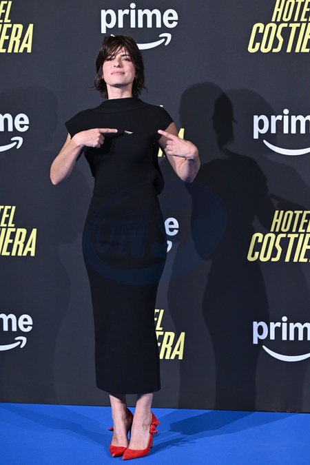 Maria Chiara Giannetta shows off the Palestine pin at the photocall for the premiere of Prime Video's new Italian Original series Hotel Costiera in Rome, 17 Sept 2025, Credit:Maria Laura Antonelli / Avalon