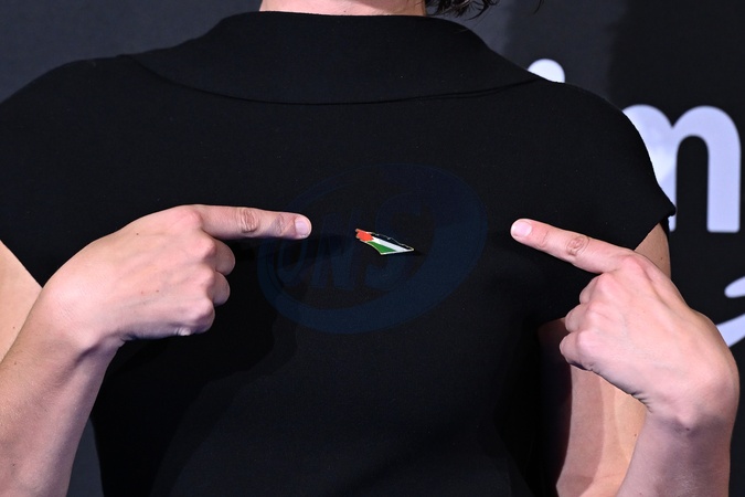 Maria Chiara Giannetta shows off the Palestine pin at the photocall for the premiere of Prime Video's new Italian Original series Hotel Costiera in Rome, 17 Sept 2025, Credit:Maria Laura Antonelli / Avalon