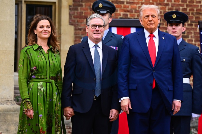 Prime Minister of the United Kingdom Sir Keir Starmer and Lady Victoria Starmer greet President of the United States Donald Trump as he arrives at ChequersUS President Donald Trump state visit to the UK, Arrival, Day 3, Chequers - 18 Sep 2025, Credit:Victoria Jones/Shutterstock / Avalon