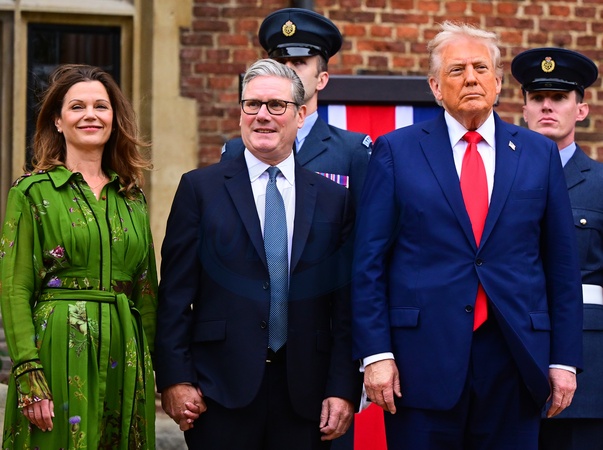 Prime Minister of the United Kingdom Sir Keir Starmer and Lady Victoria Starmer greet President of the United States Donald Trump as he arrives at ChequersUS President Donald Trump state visit to the UK, Arrival, Day 3, Chequers - 18 Sep 2025, Credit:Victoria Jones/Shutterstock / Avalon