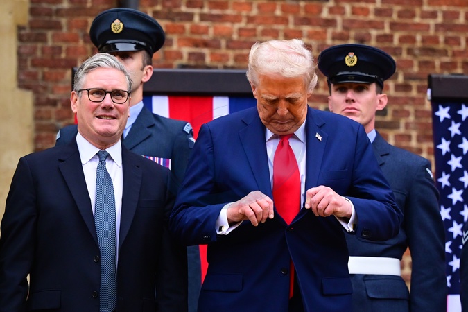 Prime Minister of the United Kingdom Sir Keir Starmer and President of the United States Donald Trump as he arrives at ChequersUS President Donald Trump state visit to the UK, Arrival, Day 3, Chequers - 18 Sep 2025, Credit:Victoria Jones/Shutterstock / Avalon