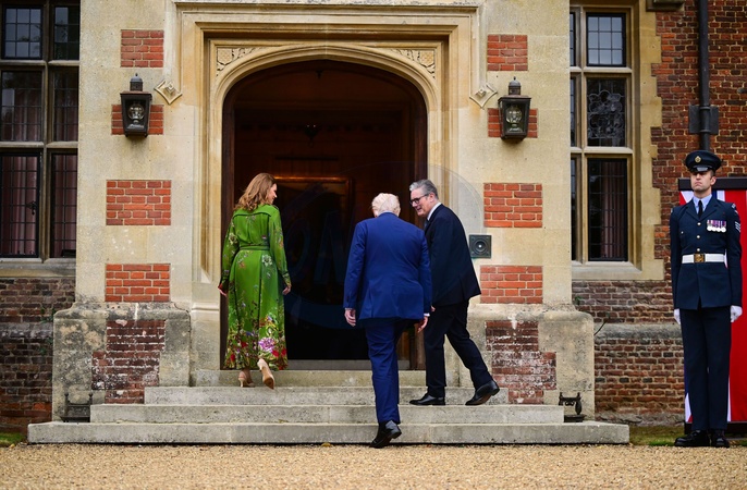 Prime Minister of the United Kingdom Sir Keir Starmer, Lady Victoria Starmer and President of the United States Donald Trump walk through the entrance of ChequersUS President Donald Trump state visit to the UK, Arrival, Day 3, Chequers - 18 Sep 2025, Credit:Victoria Jones/Shutterstock / Avalon