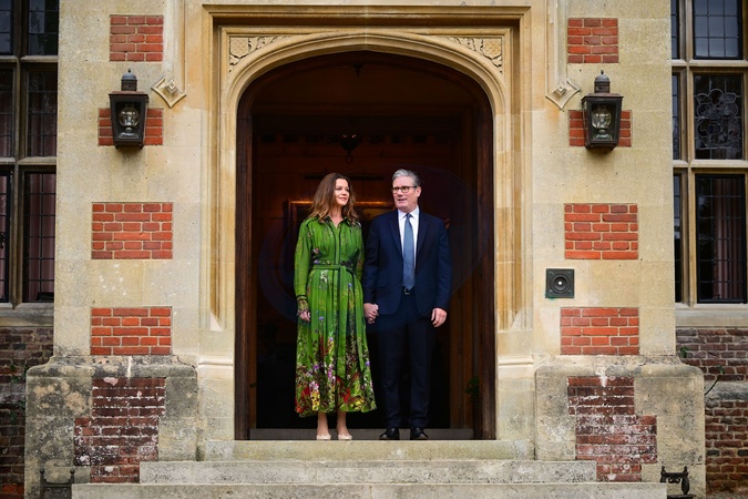 Prime Minister of the United Kingdom Sir Keir Starmer and Lady Victoria Starmer await the President of the United States Donald Trump's arrival at ChequersUS President Donald Trump state visit to the UK, Arrival, Day 3, Chequers - 18 Sep 2025, Credit:Victoria Jones/Shutterstock / Avalon