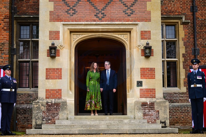 Prime Minister of the United Kingdom Sir Keir Starmer and Lady Victoria Starmer await the President of the United States Donald Trump's arrival at ChequersUS President Donald Trump state visit to the UK, Arrival, Day 3, Chequers - 18 Sep 2025, Credit:Victoria Jones/Shutterstock / Avalon