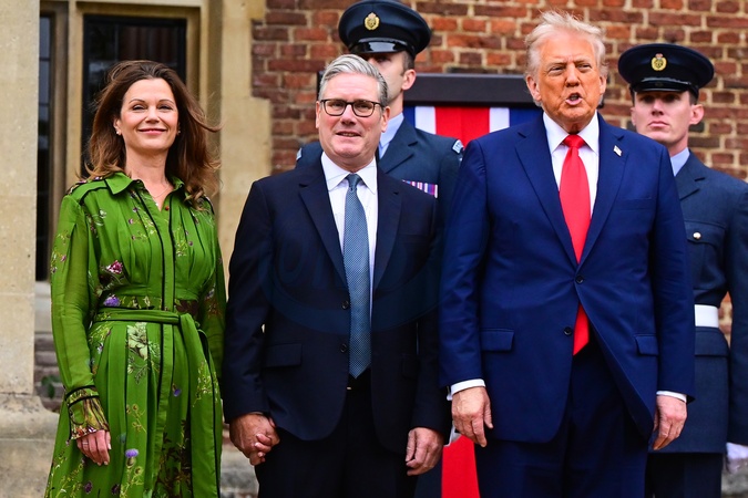 Prime Minister of the United Kingdom Sir Keir Starmer and Lady Victoria Starmer greet President of the United States Donald Trump as he arrives at ChequersUS President Donald Trump state visit to the UK, Arrival, Day 3, Chequers - 18 Sep 2025, Credit:Victoria Jones/Shutterstock / Avalon