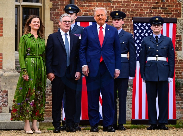 Prime Minister of the United Kingdom Sir Keir Starmer and Lady Victoria Starmer greet President of the United States Donald Trump as he arrives at ChequersUS President Donald Trump state visit to the UK, Arrival, Day 3, Chequers - 18 Sep 2025, Credit:Victoria Jones/Shutterstock / Avalon
