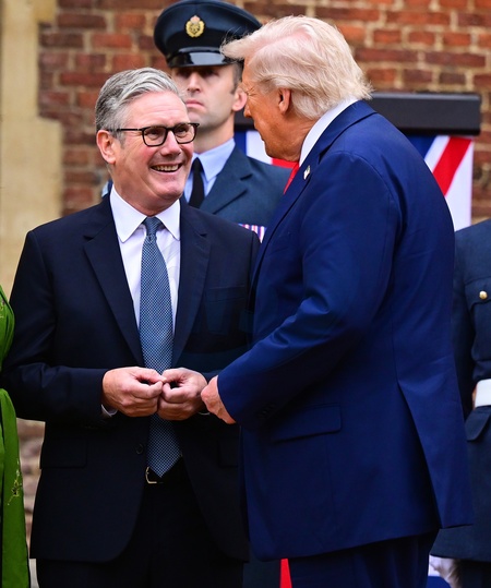Prime Minister of the United Kingdom Sir Keir Starmer greets President of the United States Donald Trump as he arrives at ChequersUS President Donald Trump state visit to the UK, Arrival, Day 3, Chequers - 18 Sep 2025, Credit:Victoria Jones/Shutterstock / Avalon