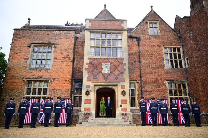 Prime Minister of the United Kingdom Sir Keir Starmer and Lady Victoria Starmer await the President of the United States Donald Trump's arrival at ChequersUS President Donald Trump state visit to the UK, Arrival, Day 3, Chequers - 18 Sep 2025, Credit:Victoria Jones/Shutterstock / Avalon