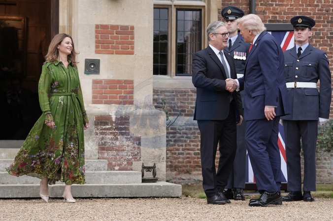 Prime Minister Sir Keir Starmer (2nd left) and Lady Victoria Starmer greet US President Donald Trump at Chequers, near Aylesbury in Buckinghamshire, on day two of the president's second state visit to the UK. Picture date: Thursday September 18, 2025., Credit:Avalon.red / Avalon
