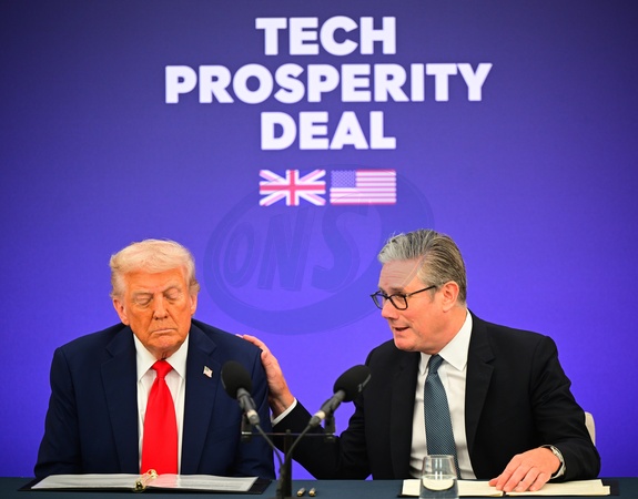 Prime Minister of the United Kingdom Sir Keir Starmer and President of the United States Donald Trump during a business event at Chequers. The meeting will involve the signing of the Tech Partnership agreement.US President Donald Trump state visit to the UK, Business Event, Day 3, Chequers - 18 Sep 2025, Credit:Victoria Jones/Shutterstock / Avalon