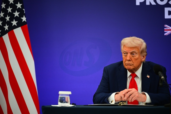 President of the United States Donald Trump during a business event at Chequers. The meeting will involve the signing of the Tech Partnership agreement.US President Donald Trump state visit to the UK, Business Event, Day 3, Chequers - 18 Sep 2025, Credit:Victoria Jones/Shutterstock / Avalon