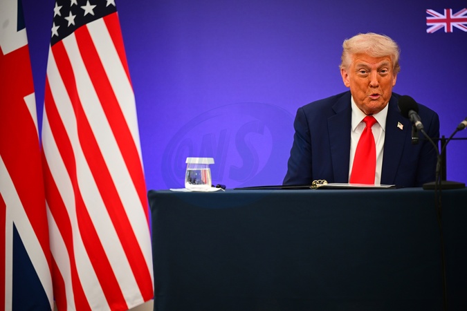 President of the United States Donald Trump during a business event at Chequers. The meeting will involve the signing of the Tech Partnership agreement.US President Donald Trump state visit to the UK, Business Event, Day 3, Chequers - 18 Sep 2025, Credit:Victoria Jones/Shutterstock / Avalon