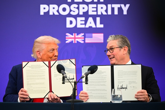 Prime Minister of the United Kingdom Sir Keir Starmer and President of the United States Donald Trump during a business event at Chequers. The meeting will involve the signing of the Tech Partnership agreement.US President Donald Trump state visit to the UK, Business Event, Day 3, Chequers - 18 Sep 2025, Credit:Victoria Jones/Shutterstock / Avalon