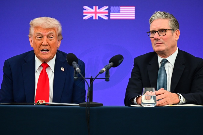 Prime Minister of the United Kingdom Sir Keir Starmer and President of the United States Donald Trump during a business event at Chequers. The meeting will involve the signing of the Tech Partnership agreement.US President Donald Trump state visit to the UK, Business Event, Day 3, Chequers - 18 Sep 2025, Credit:Victoria Jones/Shutterstock / Avalon