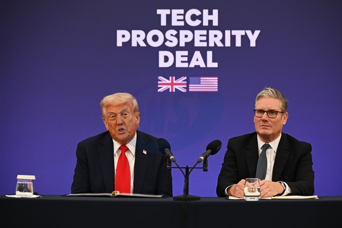 AYLESBURY, ENGLAND - SEPTEMBER 18: (L-R) U.S. President Donald Trump and UK Prime Minister Keir Starmer announce an agreement between the two countries as they hold a press conference conference at Chequers at the conclusion of a state visit on September 18, 2025 in Aylesbury, England. This is the final day of President Trump's second UK state visit, with the previous one taking place in 2019 during his first presidential term., Credit:Leon Neal / Avalon