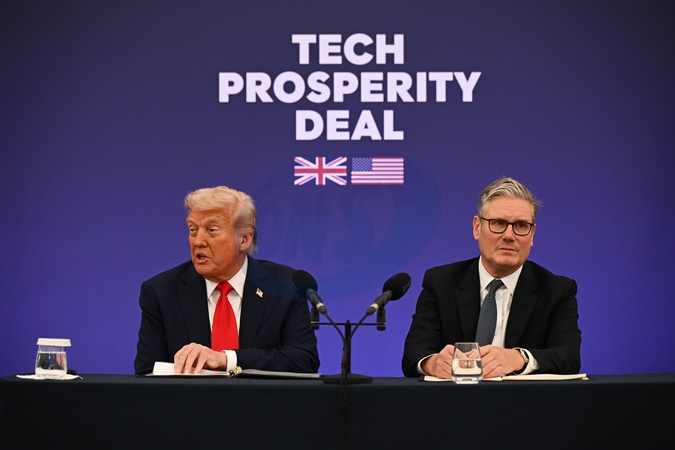AYLESBURY, ENGLAND - SEPTEMBER 18: (L-R) U.S. President Donald Trump and UK Prime Minister Keir Starmer announce an agreement between the two countries as they hold a press conference conference at Chequers at the conclusion of a state visit on September 18, 2025 in Aylesbury, England. This is the final day of President Trump's second UK state visit, with the previous one taking place in 2019 during his first presidential term., Credit:Leon Neal / Avalon
