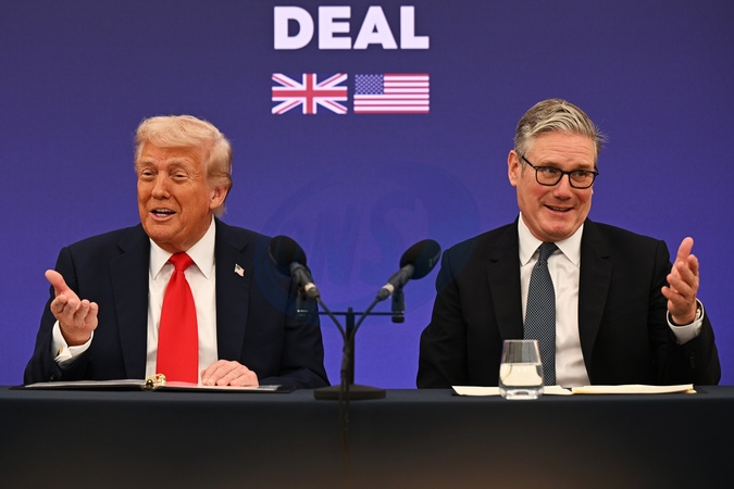 AYLESBURY, ENGLAND - SEPTEMBER 18: (L-R) U.S. President Donald Trump and UK Prime Minister Keir Starmer announce an agreement between the two countries as they hold a press conference conference at Chequers at the conclusion of a state visit on September 18, 2025 in Aylesbury, England. This is the final day of President Trump's second UK state visit, with the previous one taking place in 2019 during his first presidential term., Credit:Leon Neal / Avalon