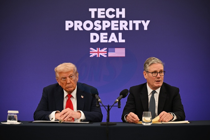 AYLESBURY, ENGLAND - SEPTEMBER 18: (L-R) U.S. President Donald Trump and UK Prime Minister Keir Starmer announce an agreement between the two countries as they hold a press conference conference at Chequers at the conclusion of a state visit on September 18, 2025 in Aylesbury, England. This is the final day of President Trump's second UK state visit, with the previous one taking place in 2019 during his first presidential term., Credit:Leon Neal / Avalon