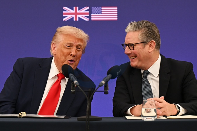 AYLESBURY, ENGLAND - SEPTEMBER 18: (L-R) U.S. President Donald Trump and UK Prime Minister Keir Starmer announce an agreement between the two countries as they hold a press conference at Chequers at the conclusion of a state visit on September 18, 2025 in Aylesbury, England. This is the final day of President Trump's second UK state visit, with the previous one taking place in 2019 during his first presidential term., Credit:Leon Neal / Avalon