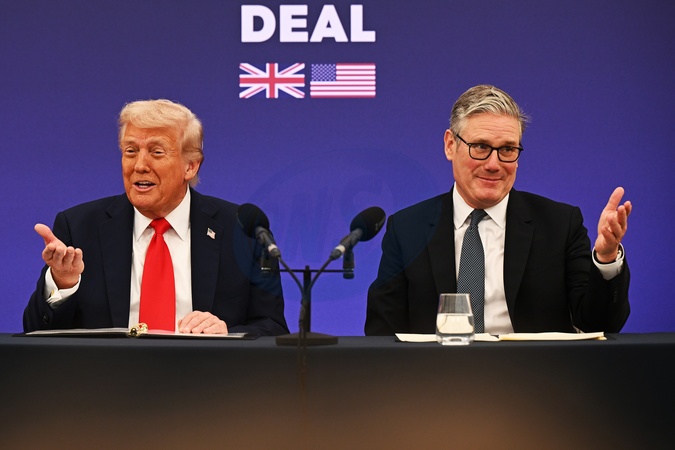 AYLESBURY, ENGLAND - SEPTEMBER 18: (L-R) U.S. President Donald Trump and UK Prime Minister Keir Starmer announce an agreement between the two countries as they hold a press conference at Chequers at the conclusion of a state visit on September 18, 2025 in Aylesbury, England. This is the final day of President Trump's second UK state visit, with the previous one taking place in 2019 during his first presidential term., Credit:Leon Neal / Avalon