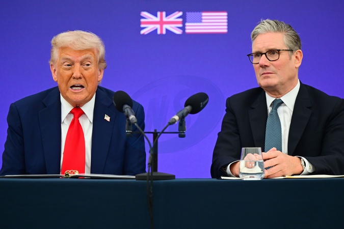 Prime Minister of the United Kingdom Sir Keir Starmer and President of the United States Donald Trump during a business event at Chequers. The meeting will involve the signing of the Tech Partnership agreement.US President Donald Trump state visit to the UK, Business Event, Day 3, Chequers, Aylesbury, UK - 18 Sep 2025, Credit:Victoria Jones/Shutterstock / Avalon