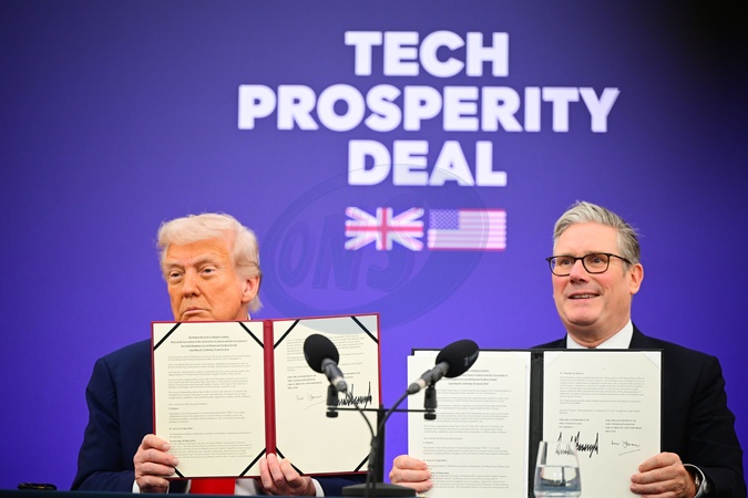 Prime Minister of the United Kingdom Sir Keir Starmer and President of the United States Donald Trump during a business event at Chequers. The meeting will involve the signing of the Tech Partnership agreement.US President Donald Trump state visit to the UK, Business Event, Day 3, Chequers, Aylesbury, UK - 18 Sep 2025, Credit:Victoria Jones/Shutterstock / Avalon