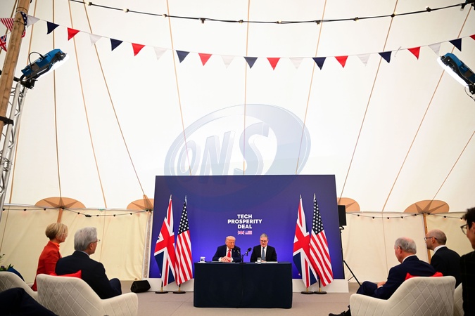 Prime Minister of the United Kingdom Sir Keir Starmer and President of the United States Donald Trump during a business event at Chequers. The meeting will involve the signing of the Tech Partnership agreement.US President Donald Trump state visit to the UK, Business Event, Day 3, Chequers, Aylesbury, UK - 18 Sep 2025, Credit:Victoria Jones/Shutterstock / Avalon