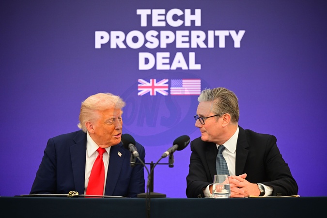 Prime Minister of the United Kingdom Sir Keir Starmer and President of the United States Donald Trump during a business event at Chequers. The meeting will involve the signing of the Tech Partnership agreement.US President Donald Trump state visit to the UK, Business Event, Day 3, Chequers, Aylesbury, UK - 18 Sep 2025, Credit:Victoria Jones/Shutterstock / Avalon
