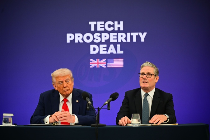 Prime Minister of the United Kingdom Sir Keir Starmer and President of the United States Donald Trump during a business event at Chequers. The meeting will involve the signing of the Tech Partnership agreement.US President Donald Trump state visit to the UK, Business Event, Day 3, Chequers, Aylesbury, UK - 18 Sep 2025, Credit:Victoria Jones/Shutterstock / Avalon