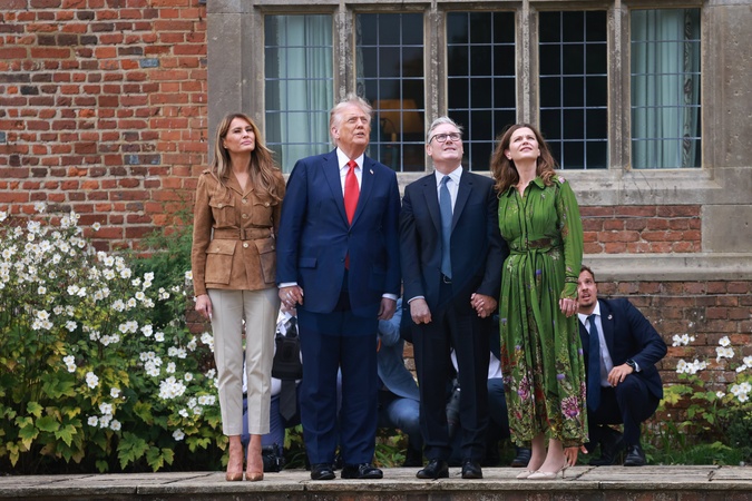 US president Donald Trump and Prime Minister Sir Keir Starmer watch the Red Devils display today at Chequers, During President Trumps 2nd state visit to the UK, Credit:Ian Vogler / Avalon