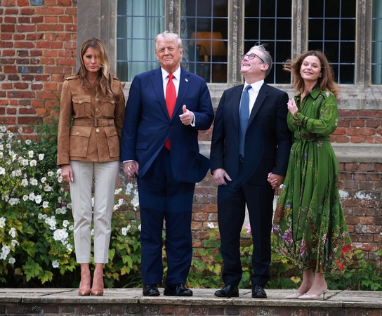 US president Donald Trump and Prime Minister Sir Keir Starmer watch the Red Devils display today at Chequers, During President Trumps 2nd state visit to the UK, Credit:Ian Vogler / Avalon