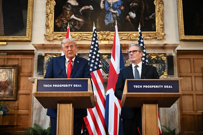 AYLESBURY, ENGLAND - SEPTEMBER 18: (L-R) U.S. President Donald Trump and UK Prime Minister Keir Starmer hold a press conference at Chequers at the conclusion of a state visit on September 18, 2025 in Aylesbury, England. This is the final day of President Trump's second UK state visit, with the previous one taking place in 2019 during his first presidential term., Credit:Leon Neal / Avalon