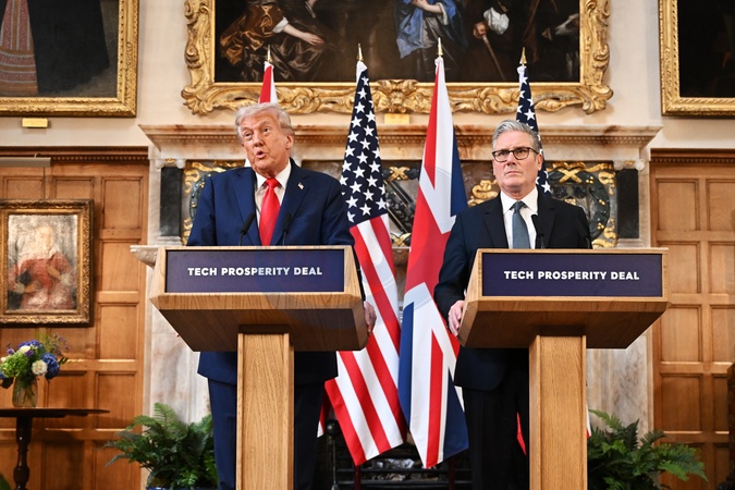 AYLESBURY, ENGLAND - SEPTEMBER 18: U.S. President Donald Trump talks at a press conference with UK Prime Minister Keir Starmer at Chequers at the conclusion of a state visit on September 18, 2025 in Aylesbury, England. This is the final day of President Trump's second UK state visit, with the previous one taking place in 2019 during his first presidential term., Credit:Leon Neal / Avalon