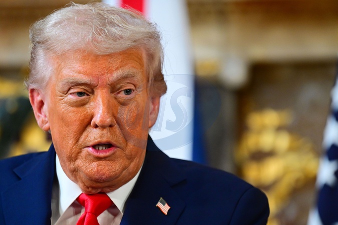 President of the United States Donald Trump during a press conference at Chequers.US President Donald Trump state visit to the UK, Press Conference, Day 3, Chequers - 18 Sep 2025, Credit:Victoria Jones/Shutterstock / Avalon