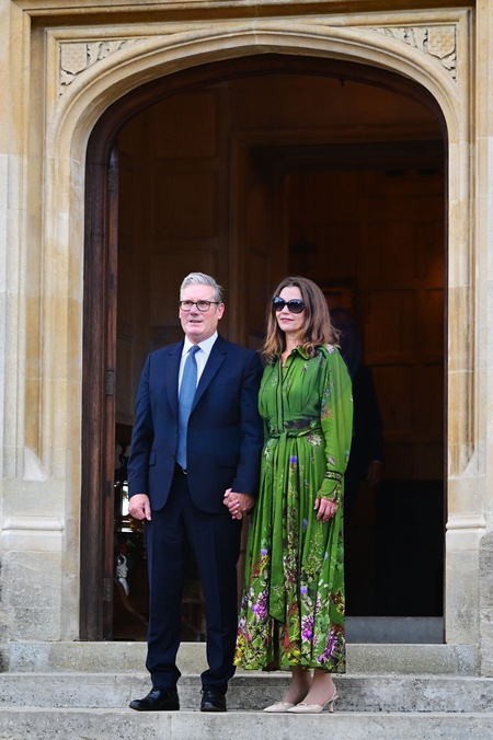 Prime Minister of the United Kingdom Sir Keir Starmer and Lady Victoria Starmer watch on as President of the United States Donald Trump and First Lady Melania Trump depart ChequersUS President Donald Trump state visit to the UK, Departure, Day 3, Chequers - 18 Sep 2025, Credit:Victoria Jones/Shutterstock / Avalon