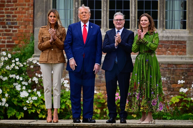 First Lady Melania Trump, United States Donald Trump, Sir Keir Starmer and Lady Victoria Starmer watch parachutistsat ChequersUS President Donald Trump state visit to the UK, Red Devils Display, Day 3, Chequers - 18 Sep 2025, Credit:Victoria Jones/Shutterstock / Avalon