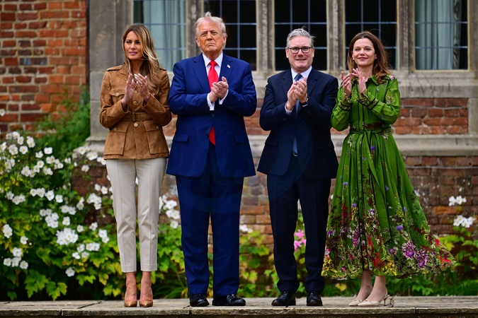 First Lady Melania Trump, United States Donald Trump, Sir Keir Starmer and Lady Victoria Starmer watch parachutistsat ChequersUS President Donald Trump state visit to the UK, Red Devils Display, Day 3, Chequers - 18 Sep 2025, Credit:Victoria Jones/Shutterstock / Avalon