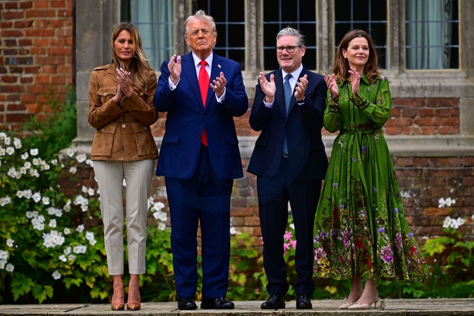 First Lady Melania Trump, United States Donald Trump, Sir Keir Starmer and Lady Victoria Starmer watch parachutistsat ChequersUS President Donald Trump state visit to the UK, Red Devils Display, Day 3, Chequers - 18 Sep 2025, Credit:Victoria Jones/Shutterstock / Avalon