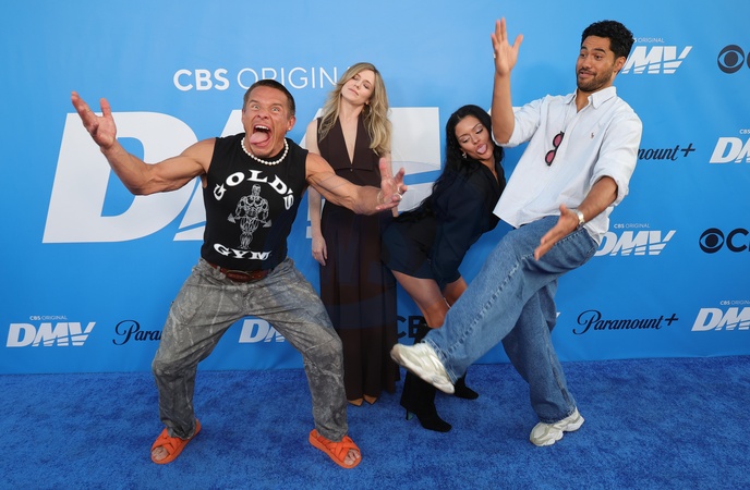 20 Septmber 2025 . Los Angeles, California - Tony Cavalero, Harriet Dyer, Gigi Zumbado, Alex Tarrant At "DMV” Exclusive Sneak Peek Outdoor Screening Event held at Vidiots Foundation - Hollywood DMV in Los Angeles., Credit:Sadou Faye / Avalon