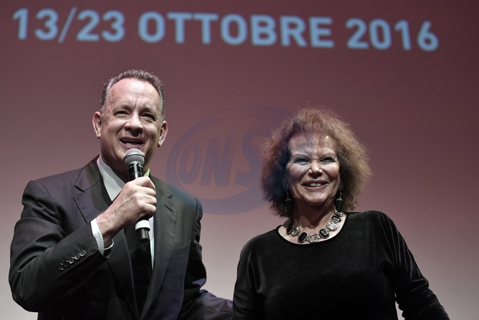 October 13, 2016, Rome. Rome Film Fest, eleventh edition. Pictured is Claudia Cardinale presenting the Lifetime Achievement Award to Tom Hanks., Credit:Maria Laura Antonelli / Avalon