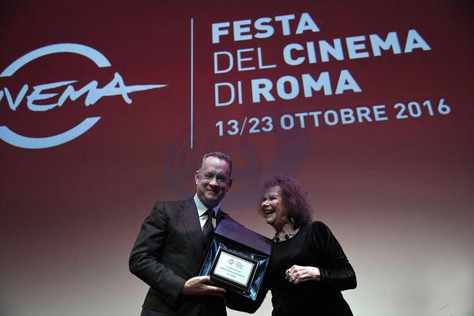 October 13, 2016, Rome. Rome Film Fest, eleventh edition. Pictured is Claudia Cardinale presenting the Lifetime Achievement Award to Tom Hanks., Credit:Maria Laura Antonelli / Avalon